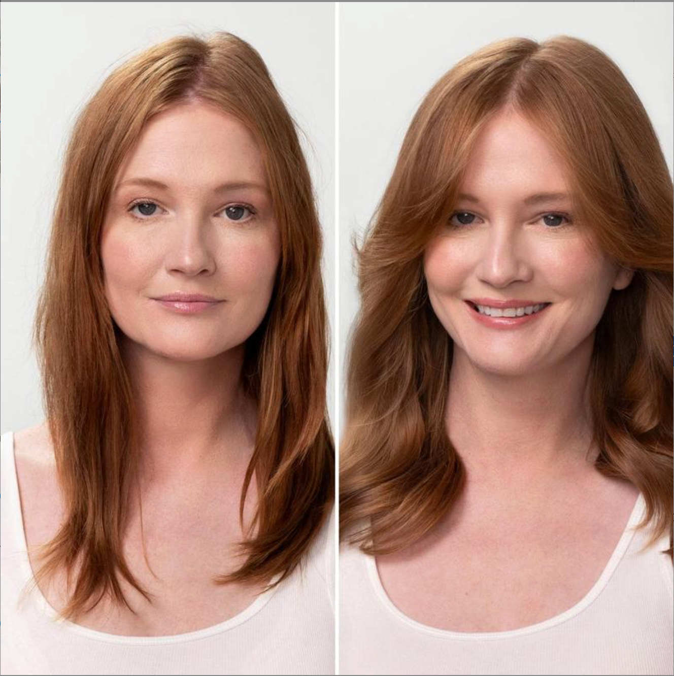 After 10 uses: Measurably thicker strands with bounce that holds through the day